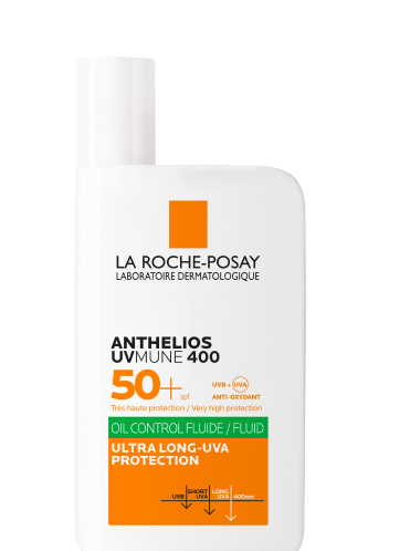 ANTHELIOS UVMUNE400 СОЛНЦЕЗАЩИТНЫЙ МАТИРУЮЩИЙ ФЛЮИД SPF50+/ PPD56 имеет легкую текстуру флюида, подходит для жирной, комбинированной кожи, и кожи, склонной к жирному блеску.